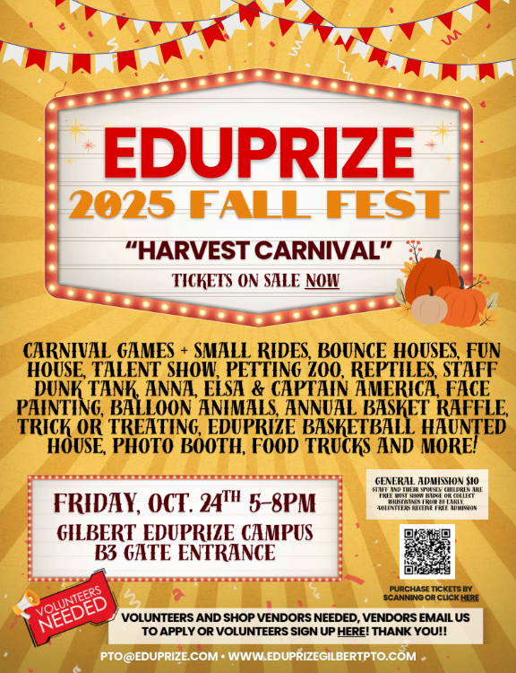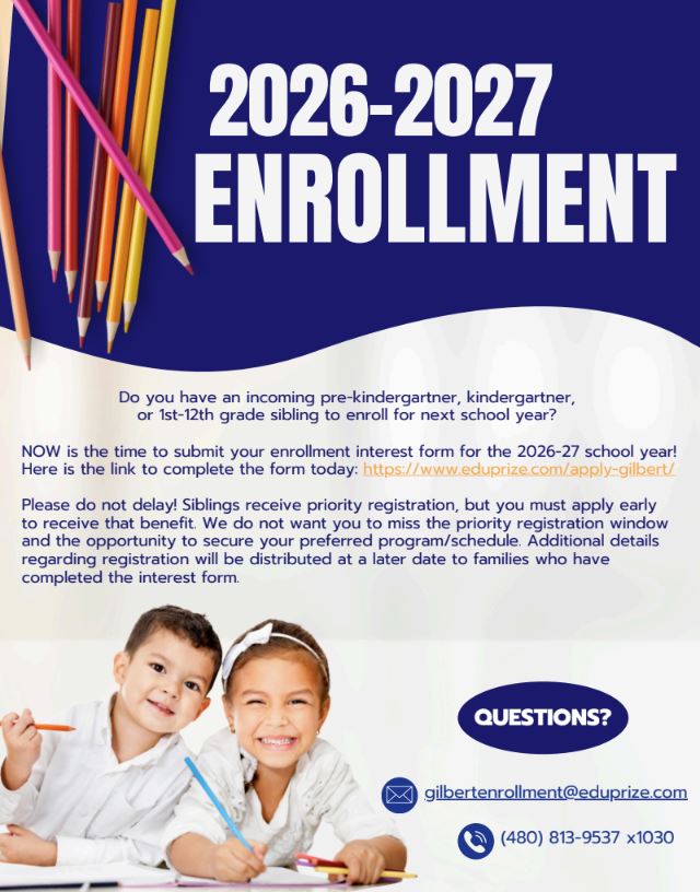 Gilbert Info/Flyers Welcome to the Gilbert Campus Flyers & Information Hub!Here you’ll find all the important flyers, updates, event announcements, and resources for the EDUPRIZE Charter Schools Gilbert community. Bookmark this page to stay informed and up to date throughout the school year.